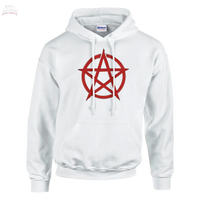 Description: Embrace the spirit of defiance with the Anarchy Star Hoodie. This striking piece showcases a vivid red pentagram-shaped anarchy emblem prominently displayed on the chest, making a bold statement against the mundane. The pristine white fabric enhances the eye-catching red graphic, resulting in a sharp, high-contrast design that resonates with enthusiasts of punk, metal, and alternative fashion. Constructed from a robust and cozy cotton blend, this hoodie is perfect for concerts, festivals, or as a standout piece in your everyday streetwear collection.
