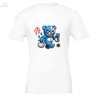 Add attitude to your wardrobe with the Wanted Dead or Alive Teddy T-Shirt. This black unisex tee features a striking blue punk teddy bear graphic holding a bomb and money bag, paired with bold “Wanted Dead or Alive” text and rebellious symbols like stars and an anarchy logo. Perfect for fans of rock, punk, and streetwear fashion, this tee is all about making a statement.